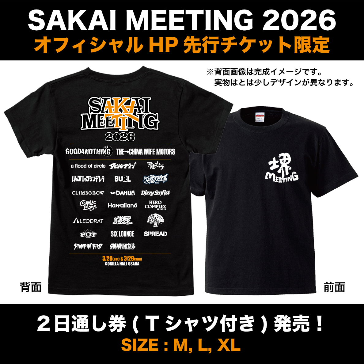 2日通し券のみ ※Tシャツ付きチケットの販売はございません。