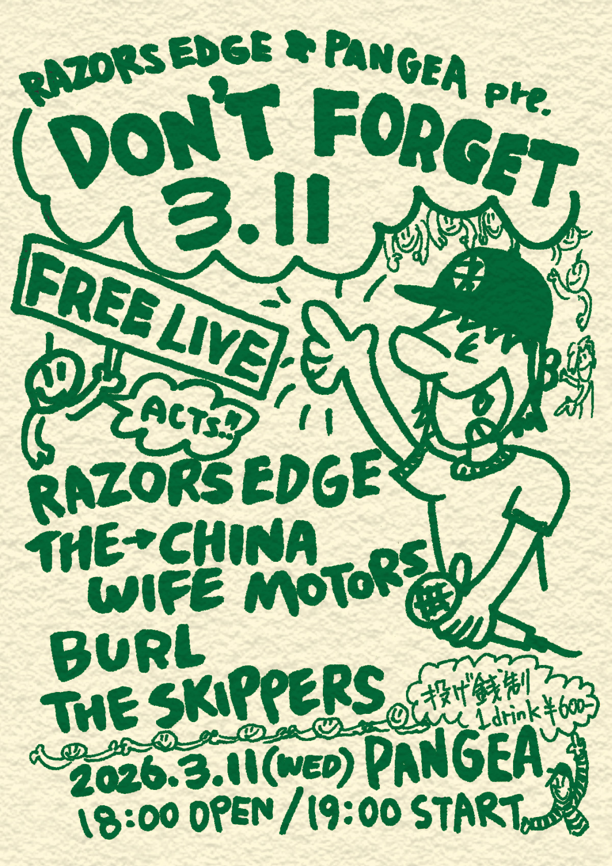 RAZORS EDGE & Pangea presents「DON’T FORGET 3.11」